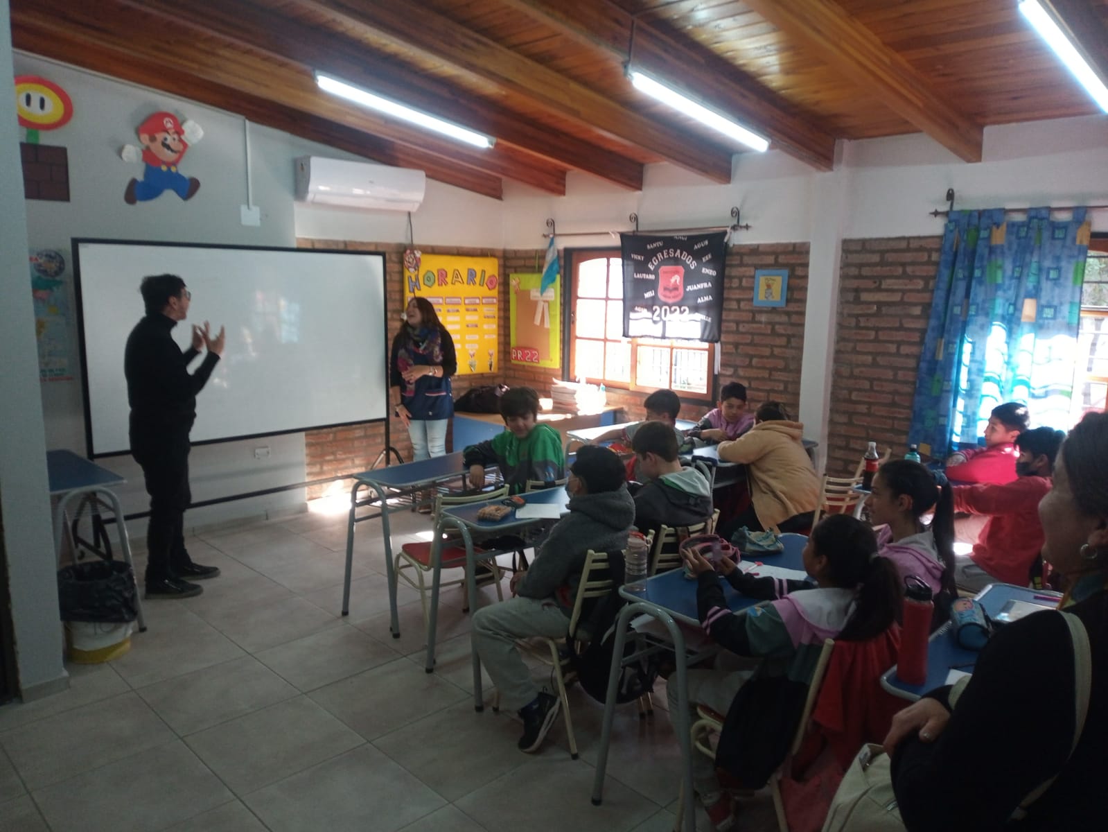 En el marco del Proyecto Lector, los estudiantes de 6° grado recibieron la grata visita del escritor cordobés Sergio Aguirre, quien brindo una entretenida charla y respondió a los interrogantes de los alumnos.